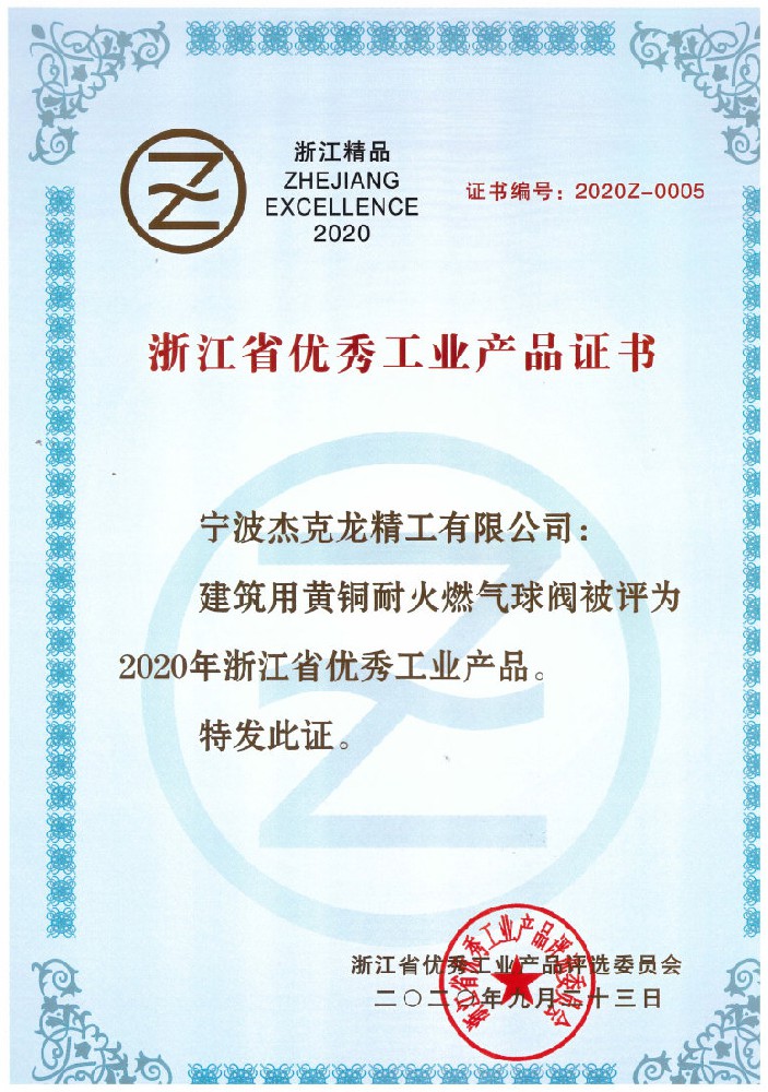 浙江省優(yōu)秀工業(yè)產(chǎn)品證書(shū)