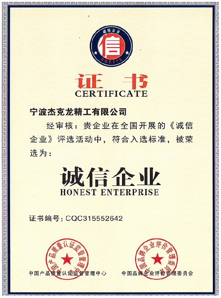誠(chéng)信企業(yè)證書(shū)