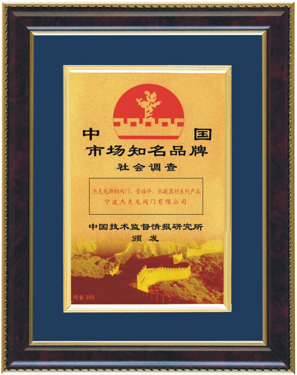 中國(guó)市場(chǎng)知名品牌證書(shū)