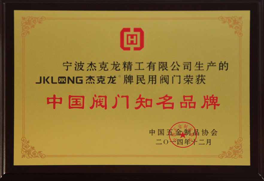 中國(guó)閥門(mén)知名品牌證書(shū)